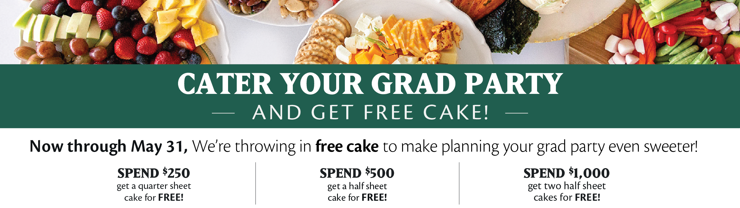 Catered Lunchboxes and Platters Order out for your next company lunch event. Available between 10 am and 4:30 pm. Questions? Call Cedar Rapids Deli Department at (319) 365-2632 or Coralville's Deli Department at (319) 358-5513. Requires at least 48 hour lead time Coralville & Iowa City Area Catering Cedar Rapids Catering To redeem, simply add your catering selections and preferred sheet cake to your cart. The price will adjust automatically based on the tier you’ve reached. No codes needed!