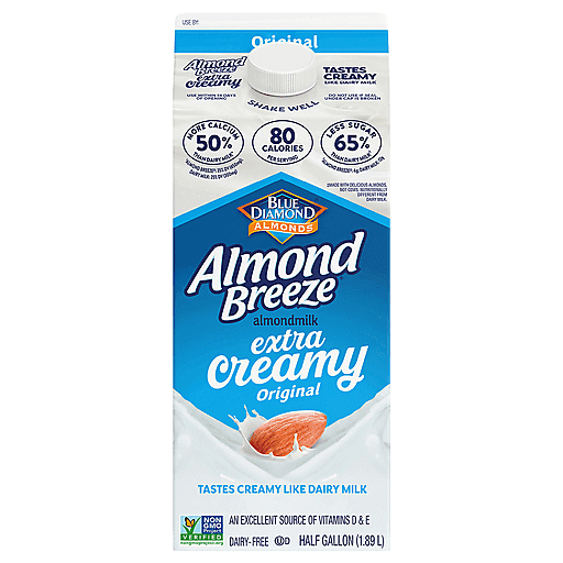 Almond Breeze Extra Creamy almondmilk tastes creamy like dairy milk and is delicious in everything, from cereals and smoothies to cooking and baking. Browse our variety of refrigerated and shelf stable almondmilk, including sweetened and unsweetened, vanilla, chocolate, coconut, and banana almondmilk blends. The best almonds make the best almondmilk.
