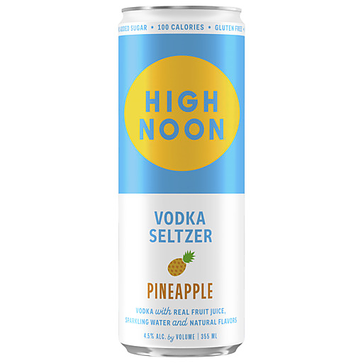 Live like the sun's out with High Noon Pineapple Vodka Seltzer. Made with real vodka & real juice, sparkling water and natural flavors, this vodka seltzer features juicy and sweet pineapple flavors in a crisp, lively, sparkling drink. With 100 calories, this pineapple hard seltzer is gluten free with no added sugar. Just toss these cans in the cooler or the fridge for convenient drinks during your next sunny adventure. High Noon Pineapple Vodka Seltzer is perfect when sipped ice cold at a backyard barbecue or for day drinking by the pool. Each can has 4.5% alcohol by volume.