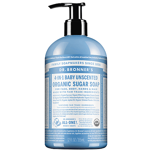 Dr. Bronner's Organic 4 In 1 Sugar Soap Baby Unscented 12.0 fl oz