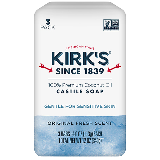 KIRK'S ORIGINAL COCO CASTILE SOAP BARS SOOTHE AND RESTORE YOUR SKIN'S NATURAL MOISTURE. OUR SOAP IS COMPLETELY CRUELTY-FREE, SO YOU CAN FEEL GOOD ABOUT YOUR CHOICE IN HYGIENE. ADDITIONALLY, OUR SOAP IS GLUTEN-FREE AND CONTAINS NO ANIMAL BY-PRODUCTS OR PARABENS. AS MASTER SOAP MAKERS, WE'VE BEEN MAKING HEALTHY, BEAUTIFUL SKIN SINCE 1839. INCLUDED IS ONE 3 BAR PACKAGE OF KIRK'S ORIGINAL COCO CASTILE SOAP BAR.