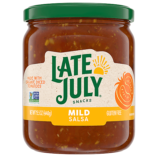 Late July® Snacks Mild Salsa has a slight kick with bold flavors. This thick and chunky salsa is crafted with organic diced tomatoes, onions, garlic and jalapenos. The result is a hearty chunky salsa in a sofrito blended base that highlights the flavors of all the high-quality ingredients with a balance of spice, so everyone can enjoy this salsa dip. The best parties need a few simple things great friends, great stories and delicious food. These three things always come back together around a big bowl of delicious Late July tortilla chips and a jar of our mild organic salsa. Each 15.5 oz jar of red salsa offers about 14 servings, perfect for sharing with family and friends. Elevate your taco dip, breakfast burritos and other favorites with our gluten free tomato salsa. It also makes the perfect addition to your favorite recipes, from chicken flautas to huevos rancheros. We care deeply about using the highest quality organic and non-GMO ingredients with no artificial flavors or preservatives, so you can enjoy snacks that are simple, pure and good. And we never sacrifice on taste. Unquestionable tasty goodness.