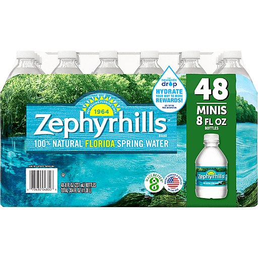Get back to nature with Zephyrhills Brand Florida Spring Water. Carefully sourced from natural springs located in the great state of Florida, it contains naturally occurring electrolytes for a crisp, clean taste you'll love. And with a better bottle made with 100% recycled plastic* and 100% recyclable, you know that you're not just getting the best that nature has to offer, you're doing your best to help us conserve it too. So grab a pack and get ready for whatever fuels you. Zephyrhills water is available in a variety of sizes, so you can easily stay hydrated no matter where you are. From your gym bag to your hiking pack, at the office, on the go or at home, you can pick up the perfect size for wherever your life takes you. Stock the fridge so your family always has crisp, refreshing hydration on hand. Plus, the more you drink, the more you can earn with The Rewards Drop. Get points with every purchase toward event tickets, merchandise and more – see packaging for details. It's one more reason to enjoy the distinctively fresh taste from the Sunshine State. *20 oz, 700mL, 1L, 1.5L still water bottles only. Excludes label and cap.