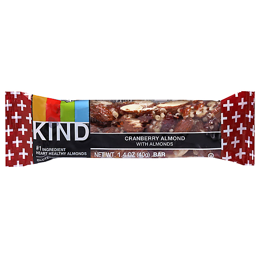 KIND Cranberry Almond bars are satisfying gluten free bars packed with nuts and cranberries that you can take anywhere. These KIND nut bars lead with heart healthy almonds as the #1 ingredient. This healthy snack bar combines quality ingredients like almonds, cranberry and honey to deliver a delicious taste with a little crunch. These snack bars come packed as individually wrapped snacks for a convenient option that makes eating healthy easier. It's the perfect nutrient-dense pick-me-up when life gets in the way. KIND bars Cranberry Almond contain 5 grams protein and are a good source of fiber*. This KIND nut bar is also gluten free, has a low glycemic index, and is made without genetically engineered ingredients. *Contains 12g of fat per bar