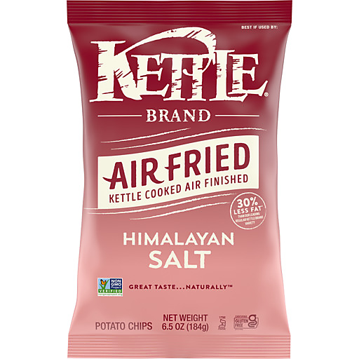 Kettle Brand Air Fried Himalayan Salt Kettle Chips are kettle cooked, air-fried chips that deliver a light and crispy crunch with no compromise on taste and texture. Sprinkled with a kiss of Himalayan pink salt, these chips have 100% bold Kettle Brand flavor with 30% less fat and a lighter texture than our regular Kettle Brand Sea Salt Chips. When you open a bag of our Kettle Brand potato chips, you know you're getting incredible kettle chips made with authentic recipes by real people. From their farms to our kitchens and then to your home, the time and attention every Kettle Brand worker puts into their products is care you can trust. All that, plus Kettle Brand Air Fried chips deliver a delicious snack that’s Non-GMO Project Verified and Certified Gluten Free. This 6.5-ounce bag of chips is perfect for sharing at parties, tailgates, or just snacking on the couch.