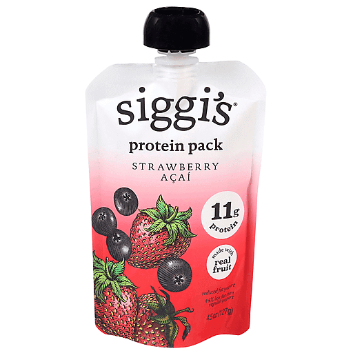 Meet the protein pouch for people who have real dates, not playdates. siggi's protein pack is a delicious reduced-fat yogurt pouch perfect for quick snacking or on-the-go occasions. Each 4.5oz pouch has 11 grams of high-quality protein, is made with real fruit, and features a simple ingredient list. Like all siggi’s products, siggi’s protein packs are crafted with less, which means no artificial flavors or artificial sweeteners. Try our full line of products, including skyr, drinkable yogurt, plant based, and yogurt pouches.